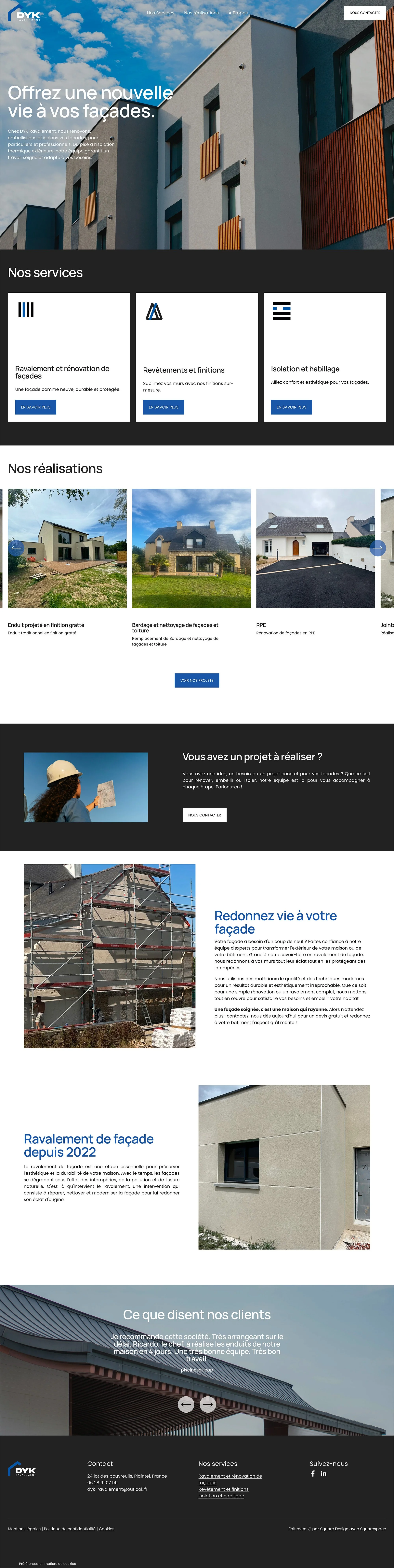 L’entreprise disposait déjà d’un site internet, mais celui-ci n’était plus adapté aux standards actuels et manquait d’attractivité. DYK Ravalement nous a donc confié la refonte complète de son site web, avec pour objectif de lui offrir une image plus moderne, dynamique et professionnelle.